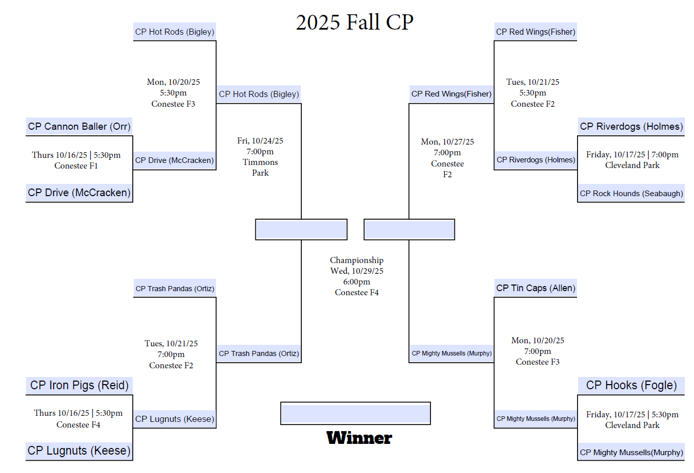Fall Tournament seeds are selected through a random drawing.